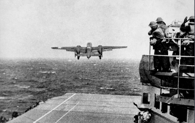 1942年4月18日清晨,美军在距离日本约650海里的海域被一艘日本警戒船发现。虽然美军巡洋舰迅速地将其击沉,但是舰队截获到无线电警报已被发出的消息。杜立特中校决定让全部轰炸机提前起飞,这就导致燃料不足,难以飞到位于中国的预定机场。