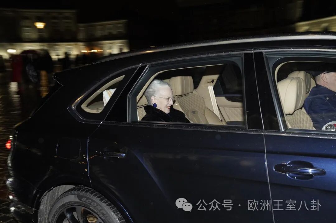 夜间大概有个碰杯家宴,拍到了玛格丽特和二妹本尼迪克特的车窗照