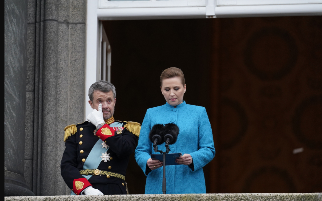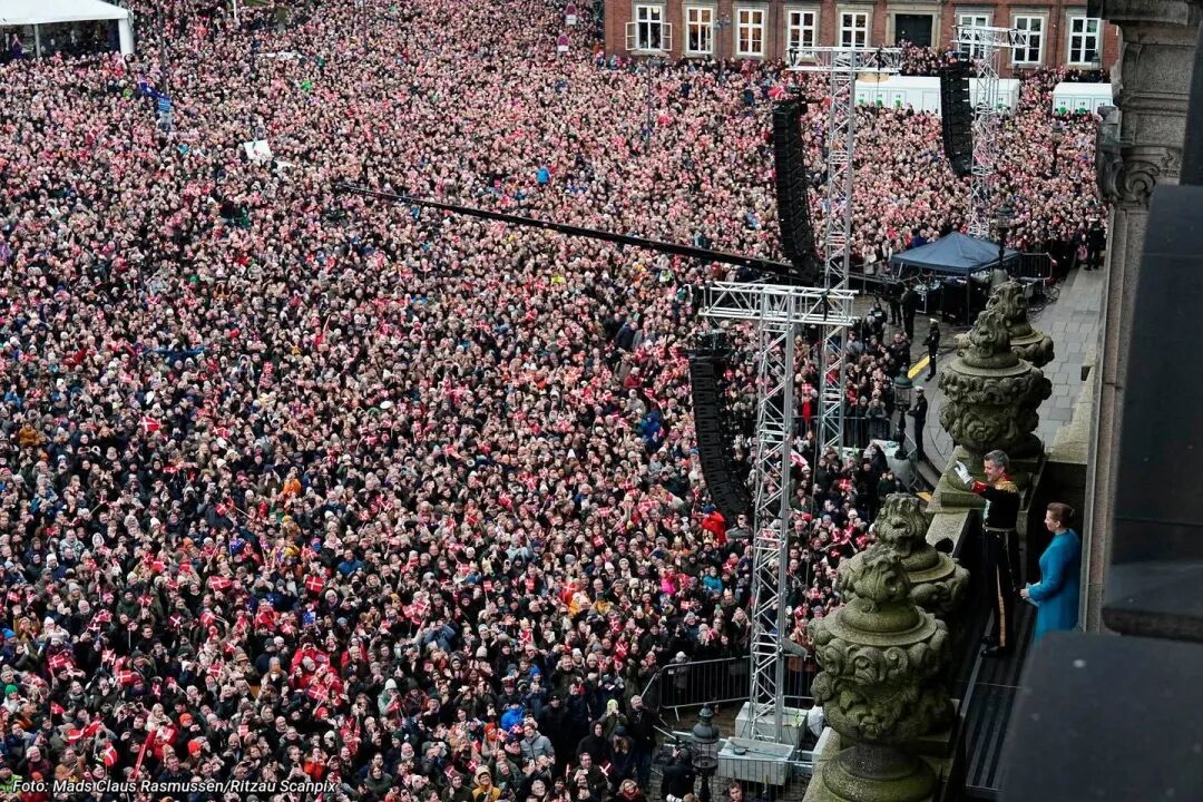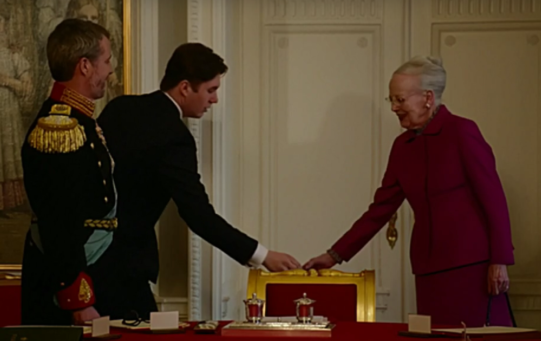 相同的词要面向三个方向各喊一次:“女王玛格丽特二世陛下已经退位,腓特烈十世国王陛下万岁。”