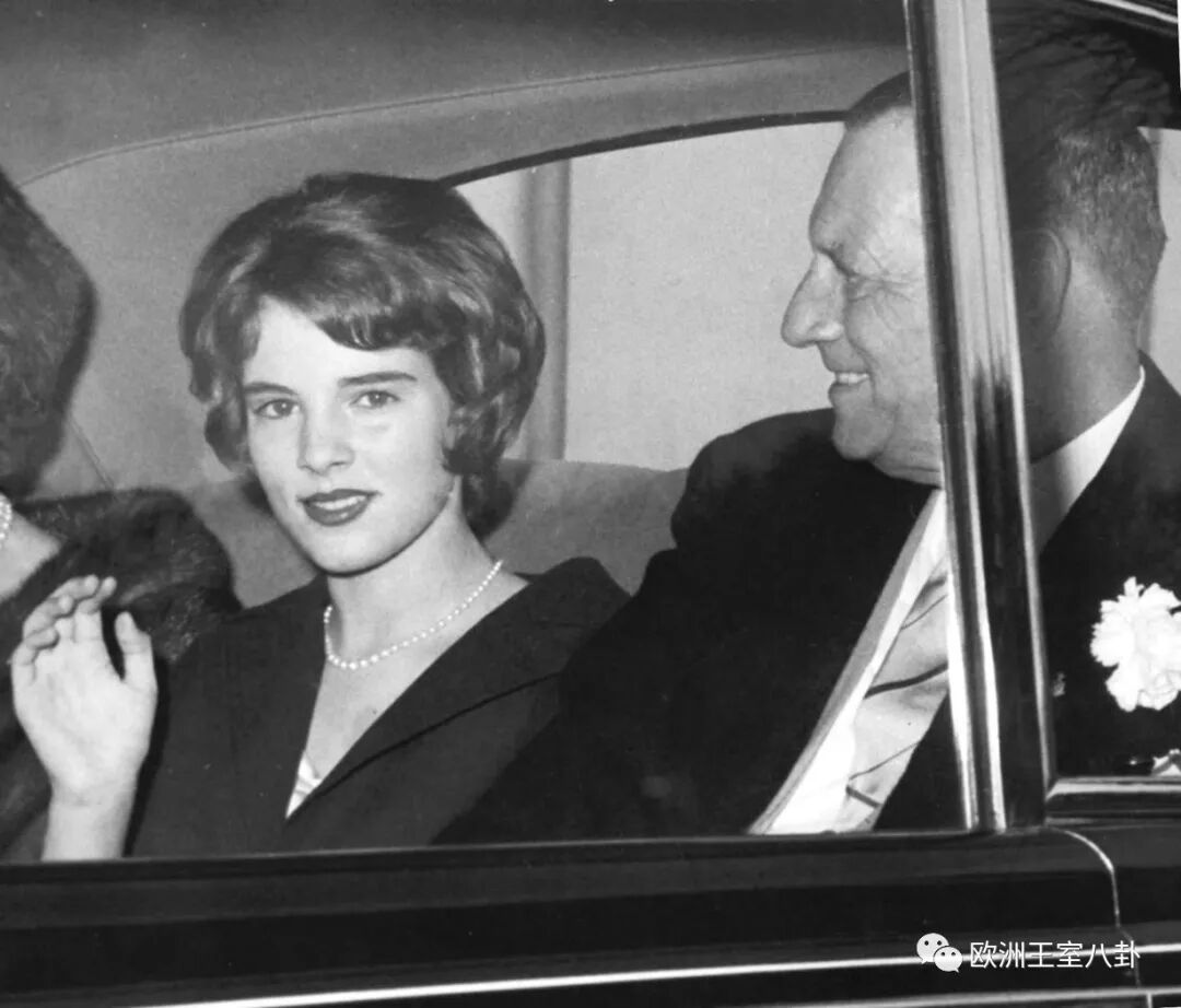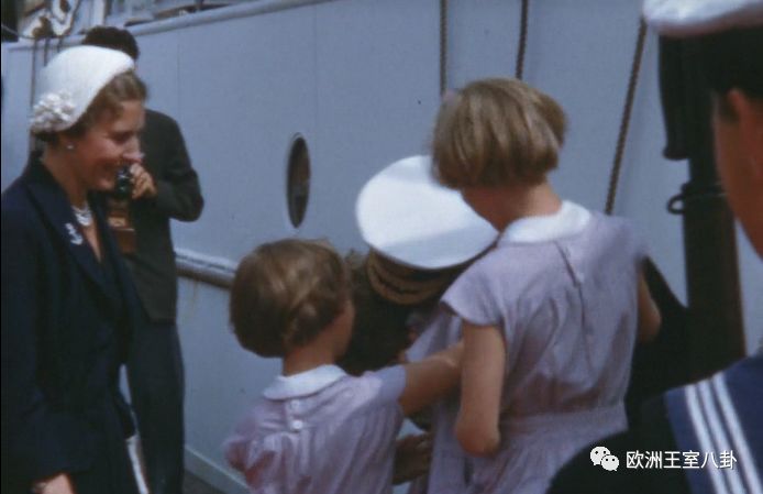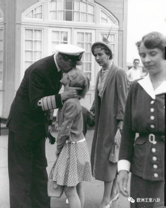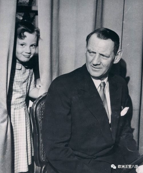 玛格丽特第一次参与国事访问,年纪小不能戴王冠,小心翼翼地牵着爸爸的手。