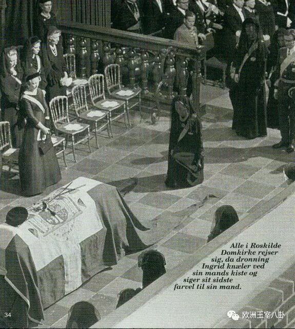 一向冷静自持的英格丽德在葬礼上有些绷不住。她戴上珍爱的钻石雏菊胸针,四十七年前她戴着这枚胸针嫁给腓九,最后,她戴着它和腓九告别。