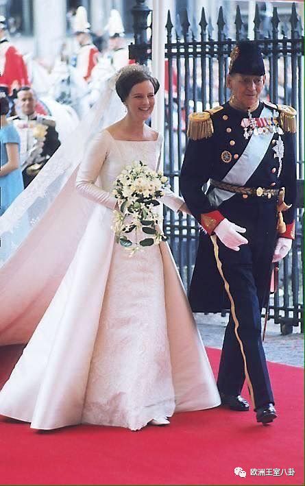 英格丽德的父亲古斯塔夫六世用特殊的方式“邀请”亡妻见证女儿的婚礼:他拆了玛格丽塔的一件钻石首饰,打成和Daisy同义的雏菊胸针送给女儿当结婚礼物。英格丽德把父亲送的胸针戴在婚纱上(上图右侧肩膀),她的女儿玛格丽特女王——另一位Daisy——也戴着这枚胸针出嫁。