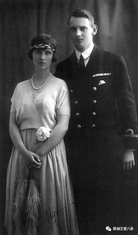 腓九很早开始被选妃,亚历山德琳娜的母亲大公是俄国人,因此想帮儿子找个俄国媳妇加强两家关系,一开始瞄准尼古拉二世的女儿,1917年之后,就没有之后了……后来不知道谁相中了希腊公主奥尔加,有一半俄国血统,又是丹麦自家人,两边父母一拍即合,1922年3月火速订婚,订婚之前腓九和奥尔加只见过两次面。