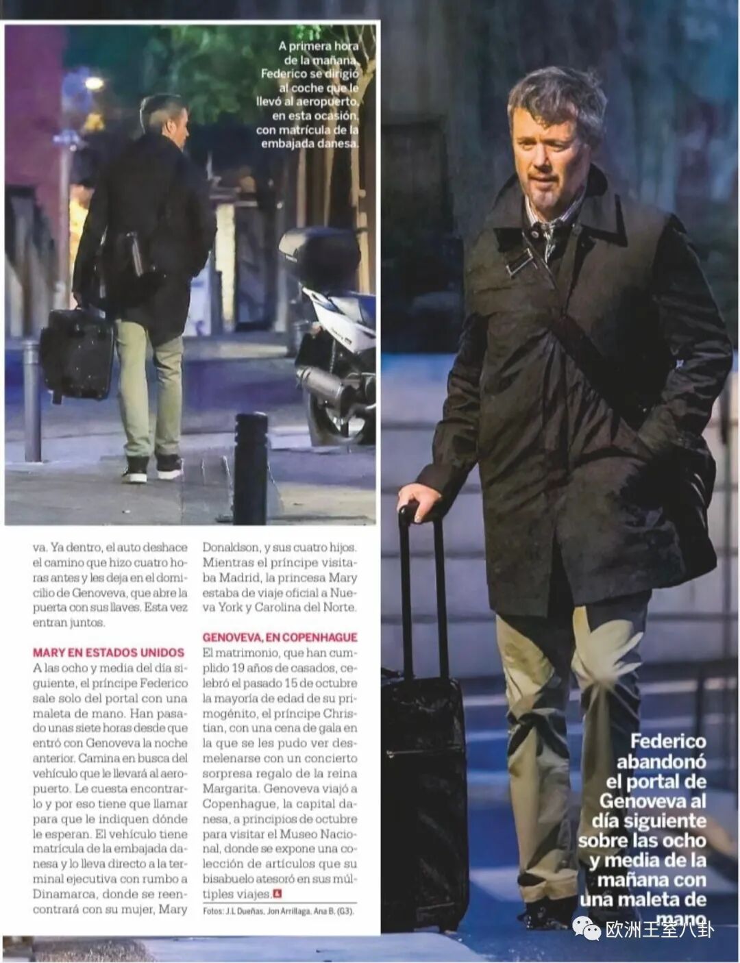 《Lecturas》的故事是这样的:大概是10月下旬某天夜间,丹麦王储腓特烈被拍到和吉诺娃在某公园溜达,逛了一会两人乘车到吉诺娃家唠嗑+换衣服