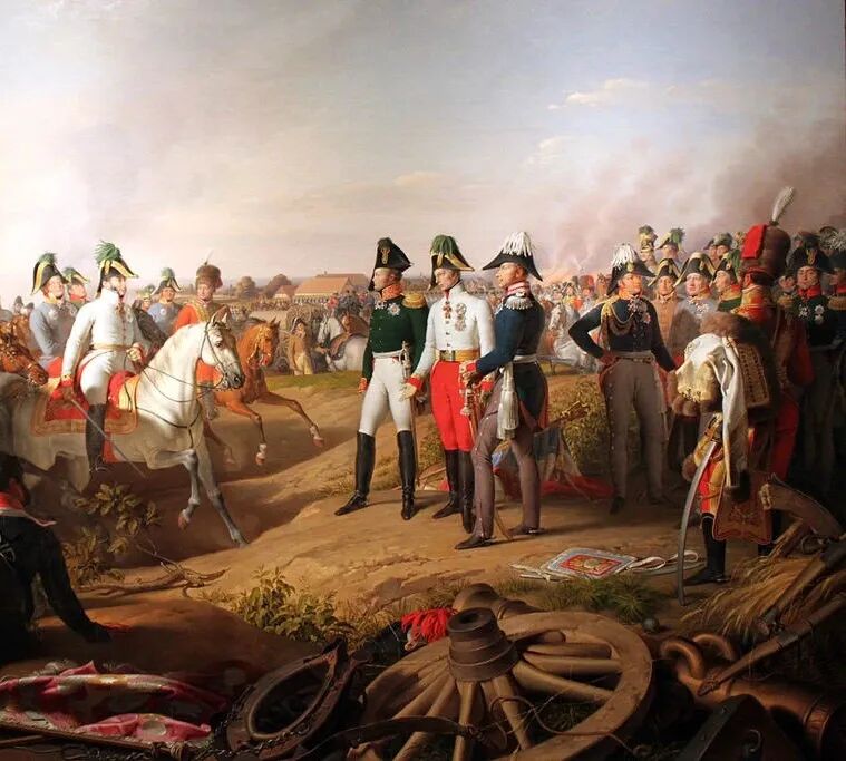 到了19世纪初期,奥地利公国已经发展成为了一个拥有广泛领土和庞大人口的大国。而在1804年,弗朗茨二世(下图中间的白衣人)宣布自封为奥地利帝国皇帝,这也标志着奥地利公国正式转变为奥地利帝国。