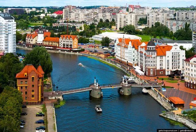 现在的加里宁格勒位于俄罗斯的最西边,为一块飞地,不与本土相邻,东北部和东部与立陶宛接壤,南邻波兰。地势较低,多是低平原,还有众多湖泊、沼泽地、河流等。 加里宁格勒常年气温不高,年均温度零上8度。战前遗物包括公园,广阔的道路,柯林斯堡遗址上的广场和两座建筑物:苏维埃之家,恢复的柯林斯堡大教堂。康德的坟墓位于教堂旁。历史悠久的市中心的许多德国时代建筑被保存下来,甚至重建,包括柯林斯堡犹太教堂。新的市中心集中在胜利广场周围。基督救世主大教堂在2005年建成,位于该广场。加里宁格勒最古老的建筑是Juditten教堂。前联交所,幸存的教堂和其余的城门。按照逆时针顺序,为:萨克海姆门,国王之门,攻击门,铁门,勃兰登堡门和弗里德兰门。