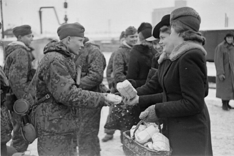 ▲爱沙尼亚党卫军正在接受当地妇女的慰问