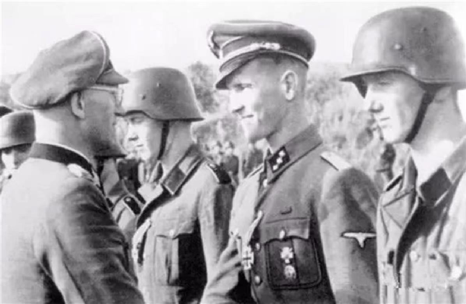 ▲库尔斯克战役后,时任“维京”师师长的吉勒将军向纳尔瓦营的爱沙尼亚官兵授勋
