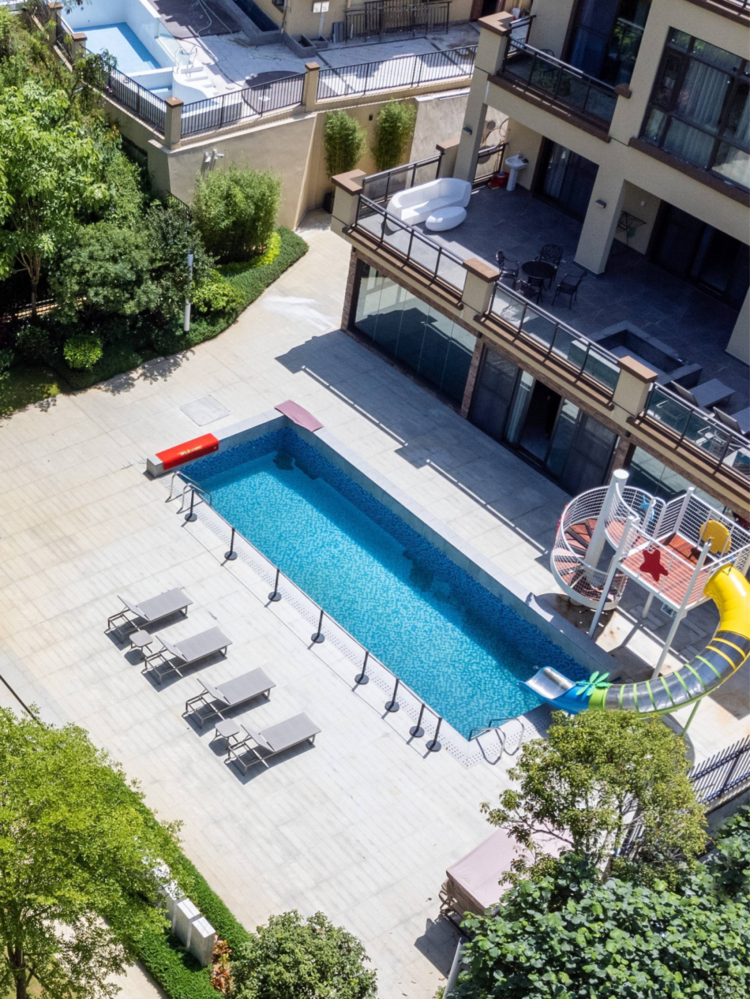 妥妥的新中式温泉别墅🤩,别墅内部还配套电梯!不用担心爬楼梯啦!外部有超大的户外院子,配套滑滑梯泳池🏊♀️可以户外烧烤🍡做趣味拓展小游戏,40个人都没问题!