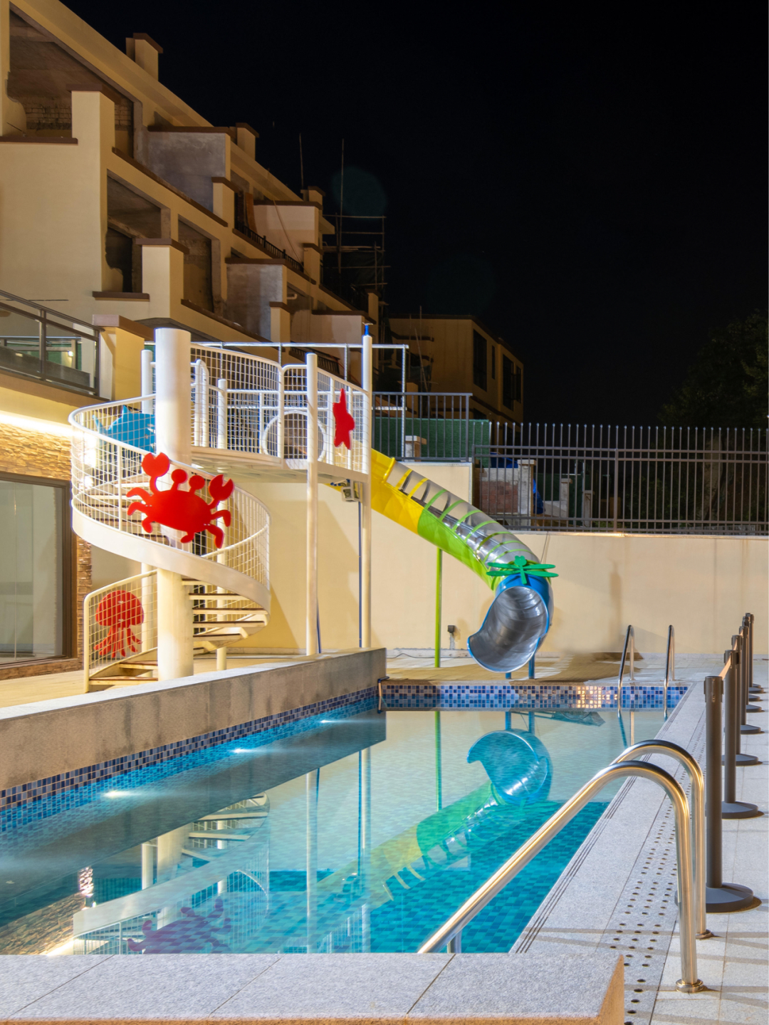 1️⃣超大的户外滑梯泳池🏊♀️(4*9m)➕室外3个温泉泡池♨️10月份的团建再适合不过啦