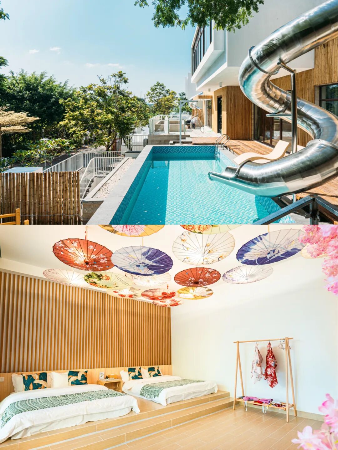 🌟部分有泳池的别墅还可以畅游一下午,游累了晚上也可以在私人泡池里面歇息,有的泳池还有滑滑梯嘞,小孩子的最爱!