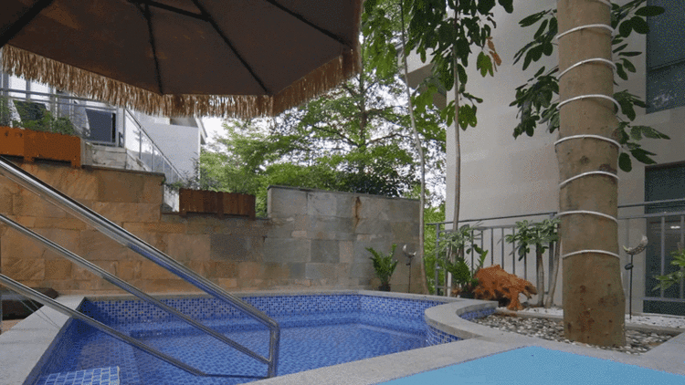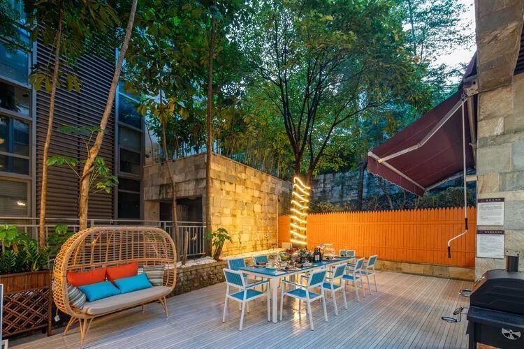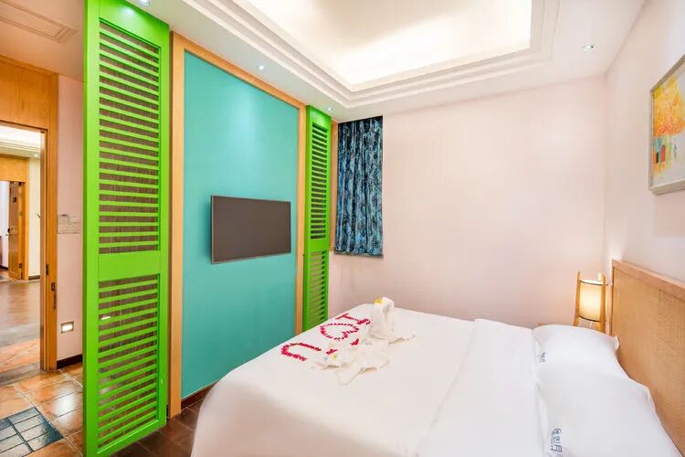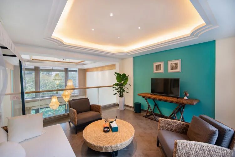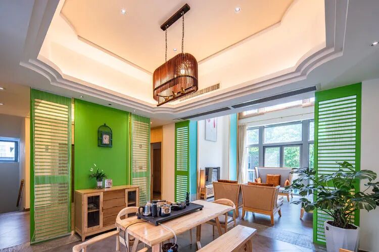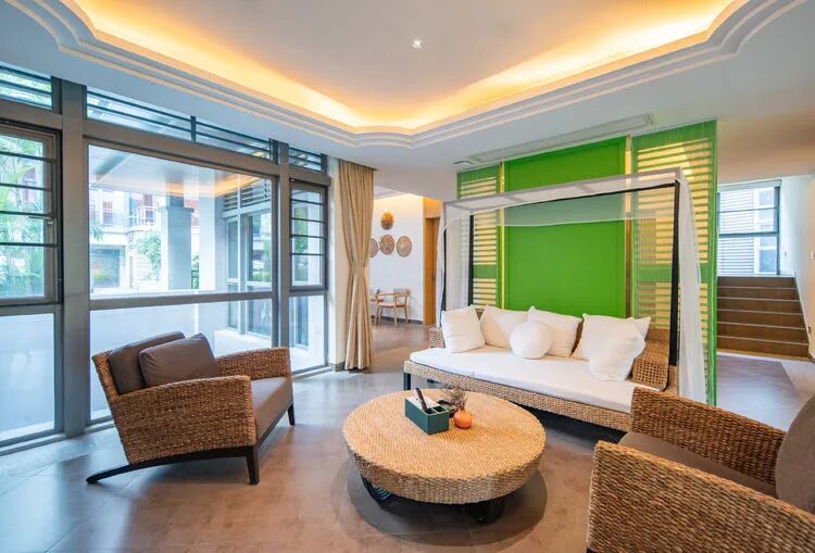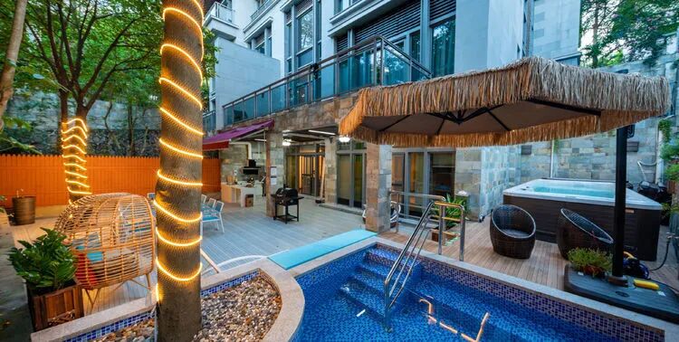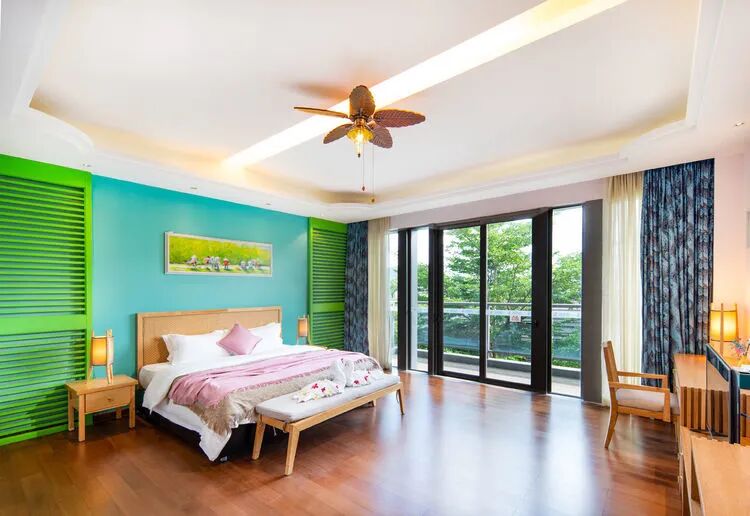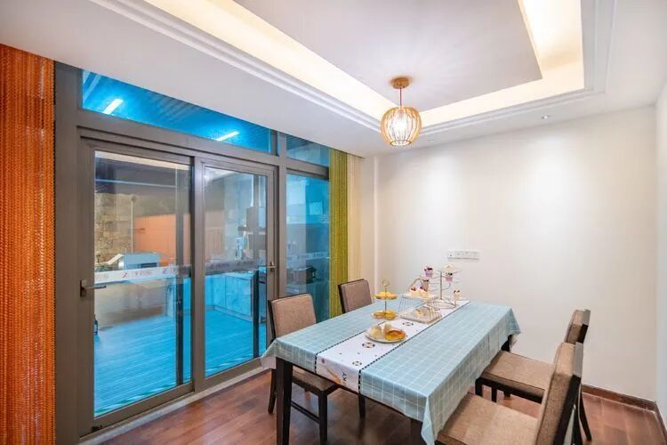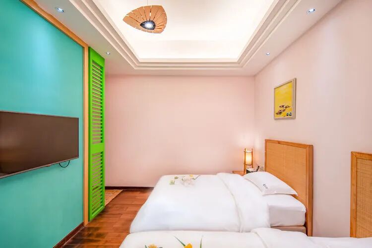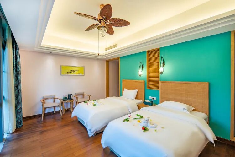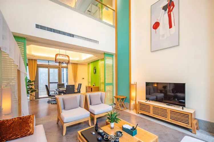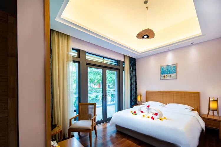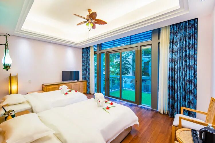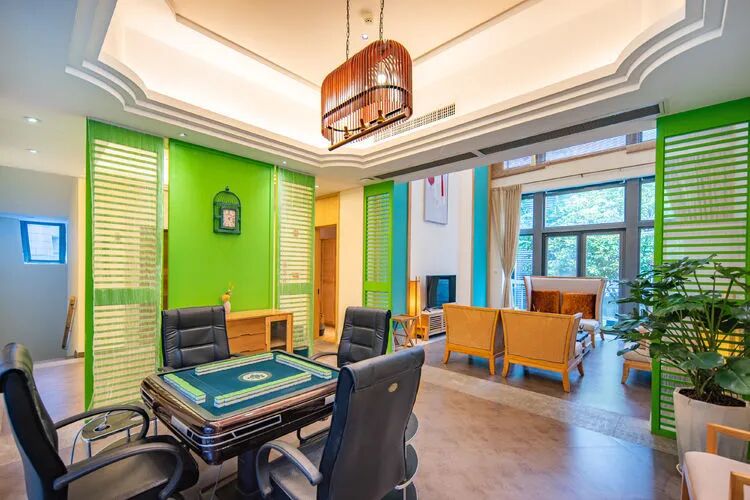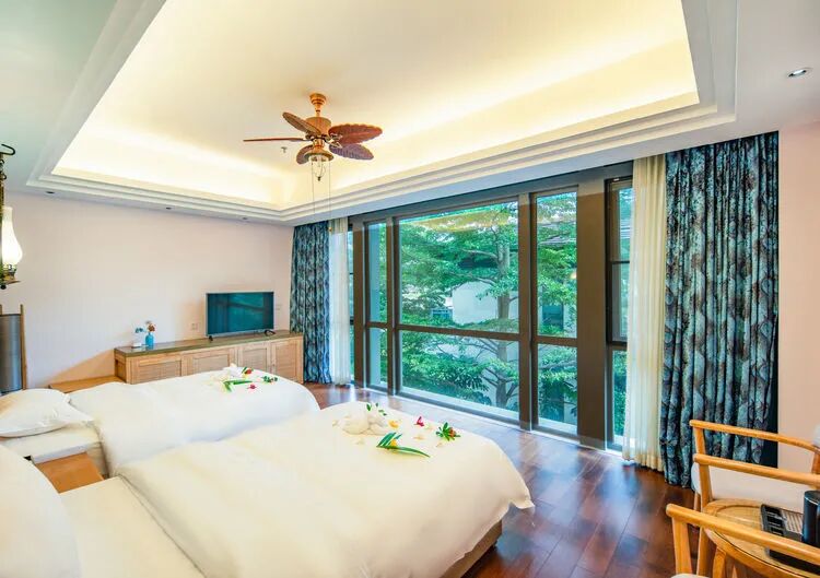 东南亚风六房9床可住12人,最多限制入住大小不超过15人1.全套间高端电梯别墅1栋1晚2.厨房【冰箱一个,提供电饭煲、电磁炉锅】3.提供自动麻将1台4.别墅内配备电梯5.私家大花园6.户外花园长桌(标配10座,可增加凳子)7.提供WIFI(密码:87654321)8.提供洗刷用品【毛巾.牙刷.沐浴露.洗发水】9.私家独立KTV(15:00-24:00开放)10.独立会议室(标配18座,可增加凳子);11.电烧烤炉1个,物业禁止炭烧(食材、调料、一次性餐具需自备)12.免费送1池温泉水(超出按300元/一池收取)13.儿童恒温泳池1个(赠送一池水)14.禁止🚫携带宠物