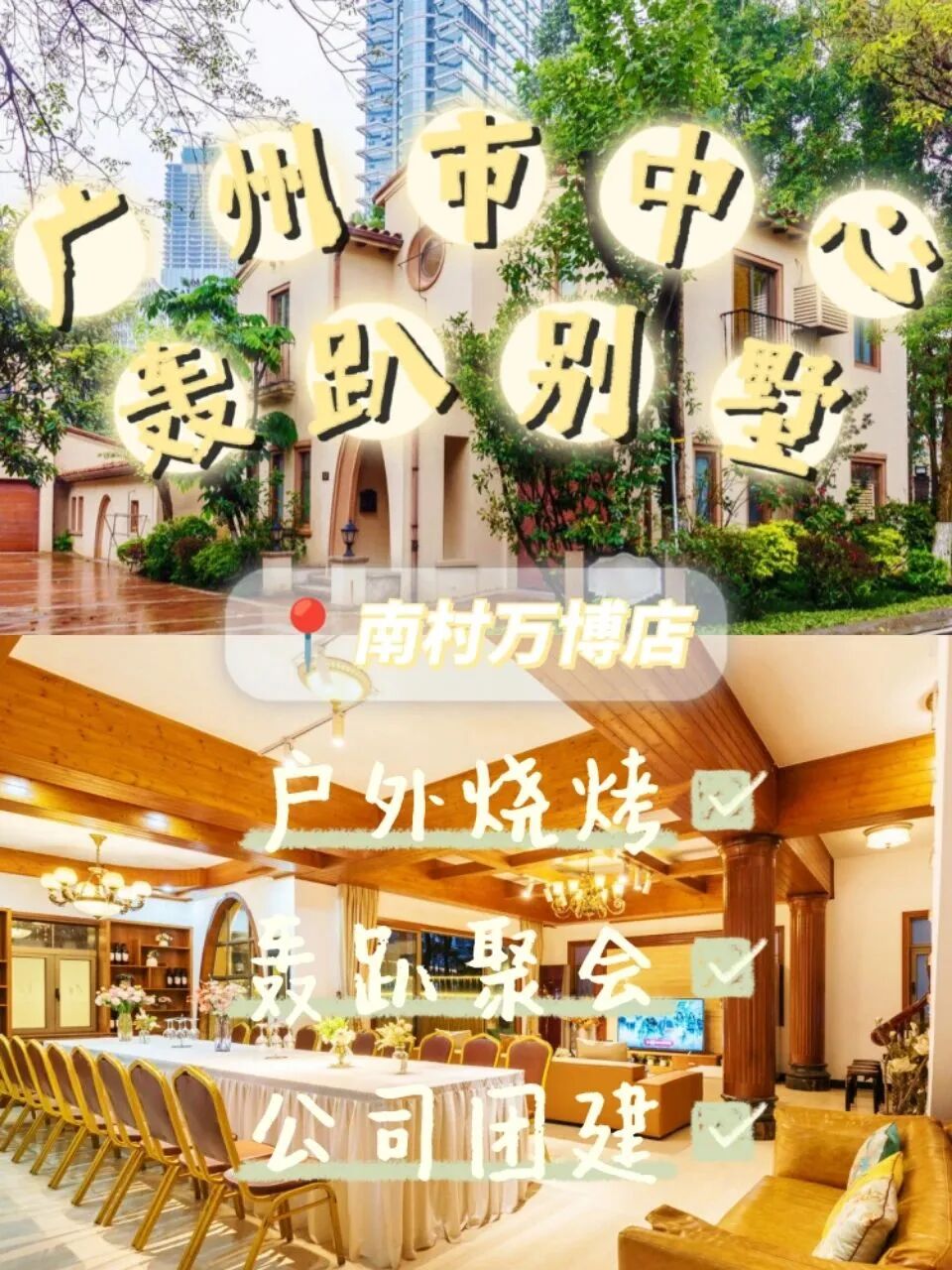 广州番禺万博 CBD 的户外轰趴别墅🏨复古风装修的大 House ,💒独栋两层的别墅外加户外花园烧烤场🍢别墅里涵盖多种娱乐设施🕹不同的聚餐模式、能轻松满足2️⃣0️⃣人聚会✔️