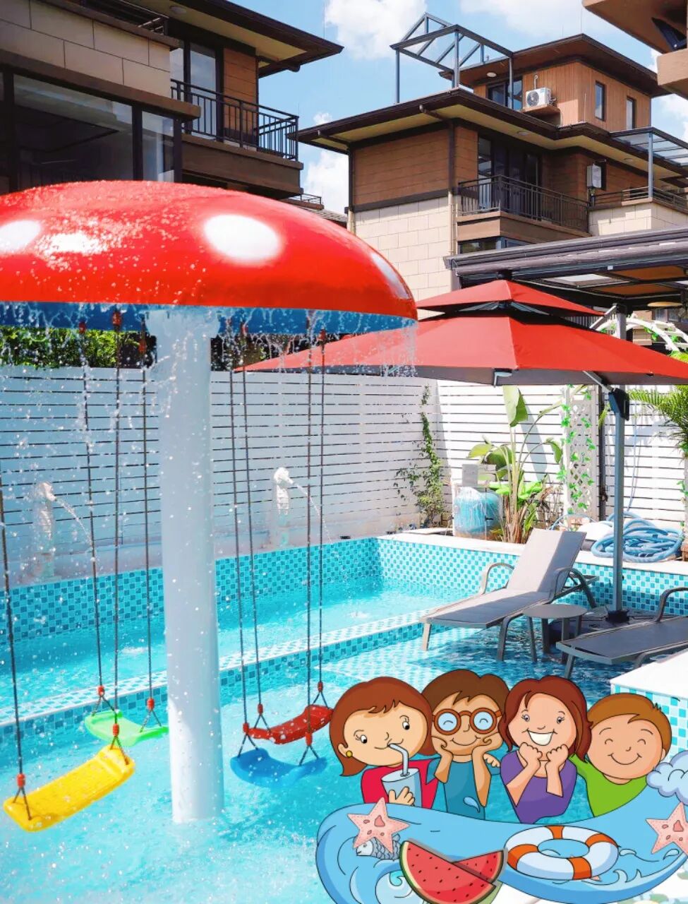 花园滑梯泳池🏊水上乐园滑梯🎢室内滑梯泡泡池🛀儿童乐园🎭电烤炉烧烤🍢独立 KTV 🎤自动麻将机🀄厨房全套设备等,吃喝玩乐一站式安排,食物酒水零食可提前配送到别墅~✔️