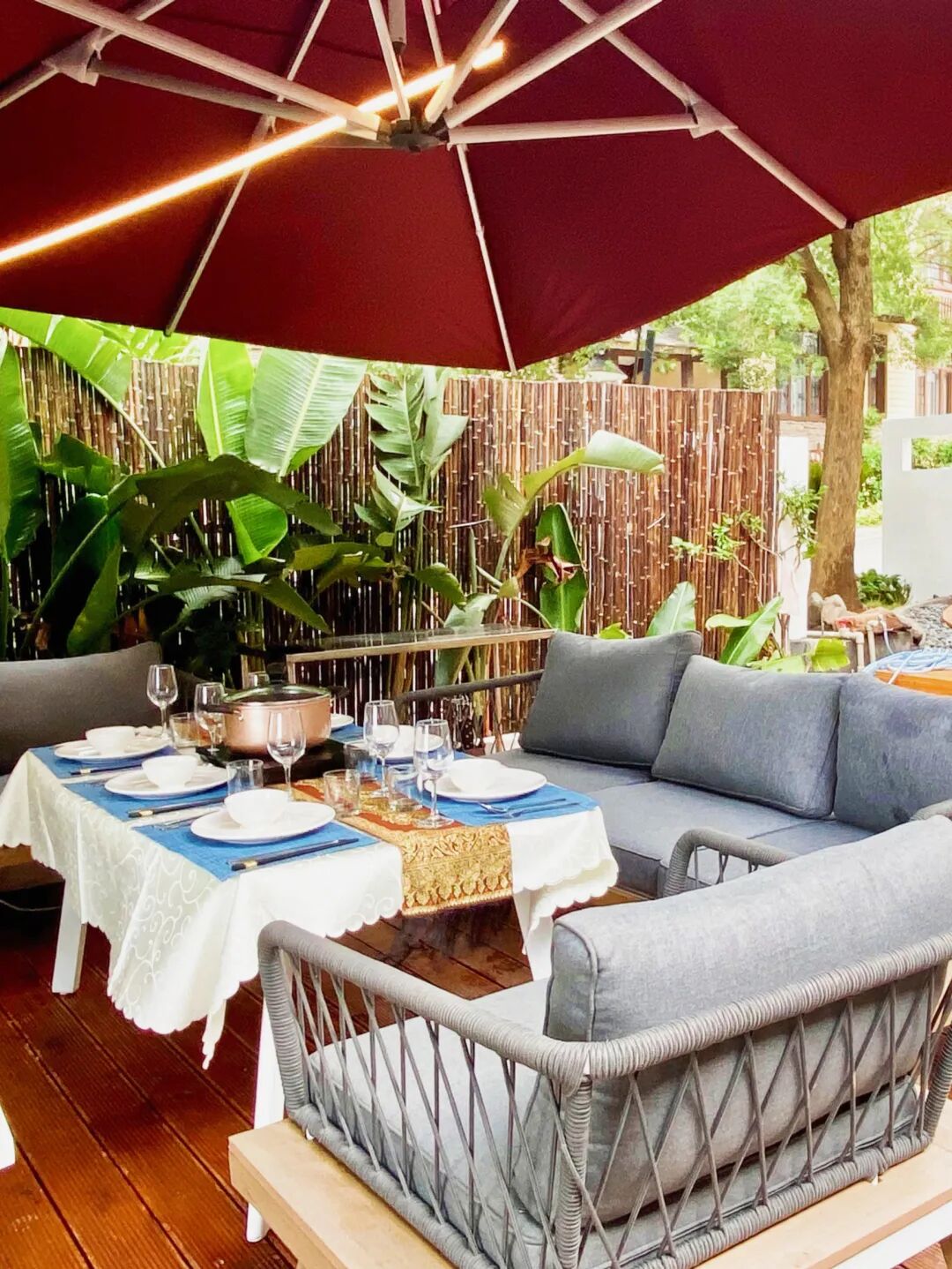 💛超大的户外花园🌼遮阳伞⛱休闲藤椅等都非常🈶度假feel~来个烧烤BBQ聚会太开心😃