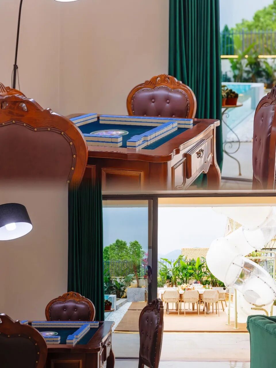 公共区域:自助独立厨房🍽饭桌、客厅、电动麻将一张、一线山景、卫生间