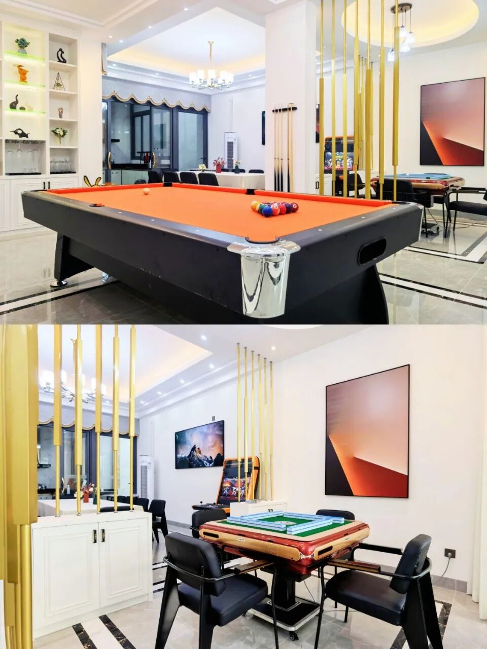滑梯大泳池🏊户外用餐区+烧烤区🍢厨房&餐厅🍽街机🎮全自动麻将机🀄独立KTV房🎙温泉池♨️后花园温泉池可以看到湖景🏞至少能同时容纳十个人或以上,后花园还有6人桑拿🌁