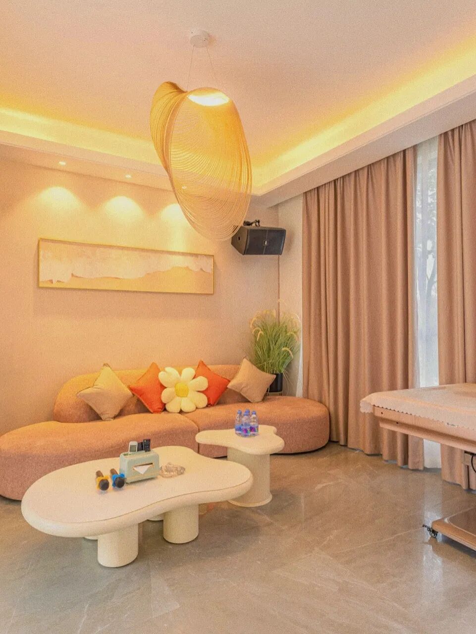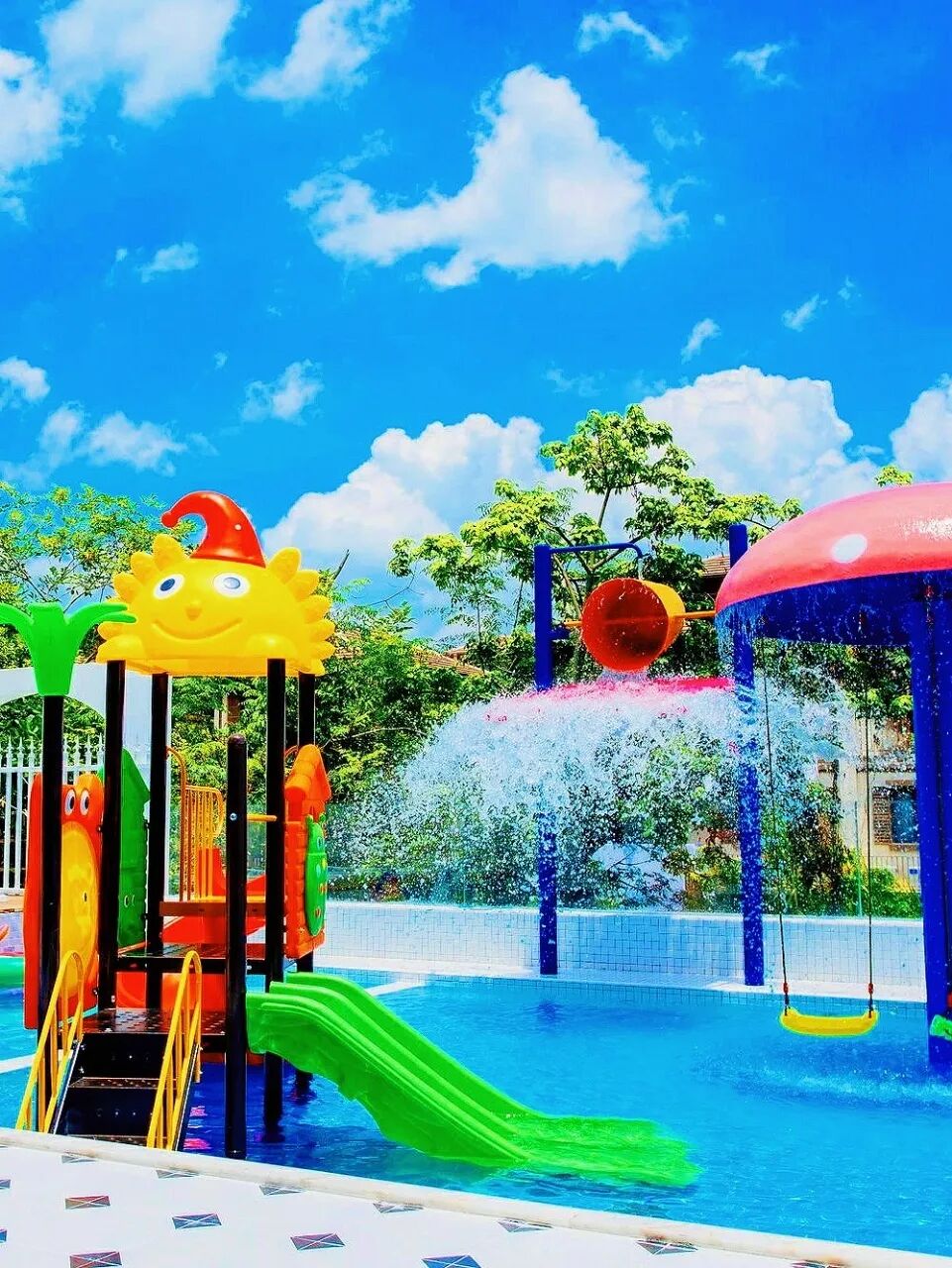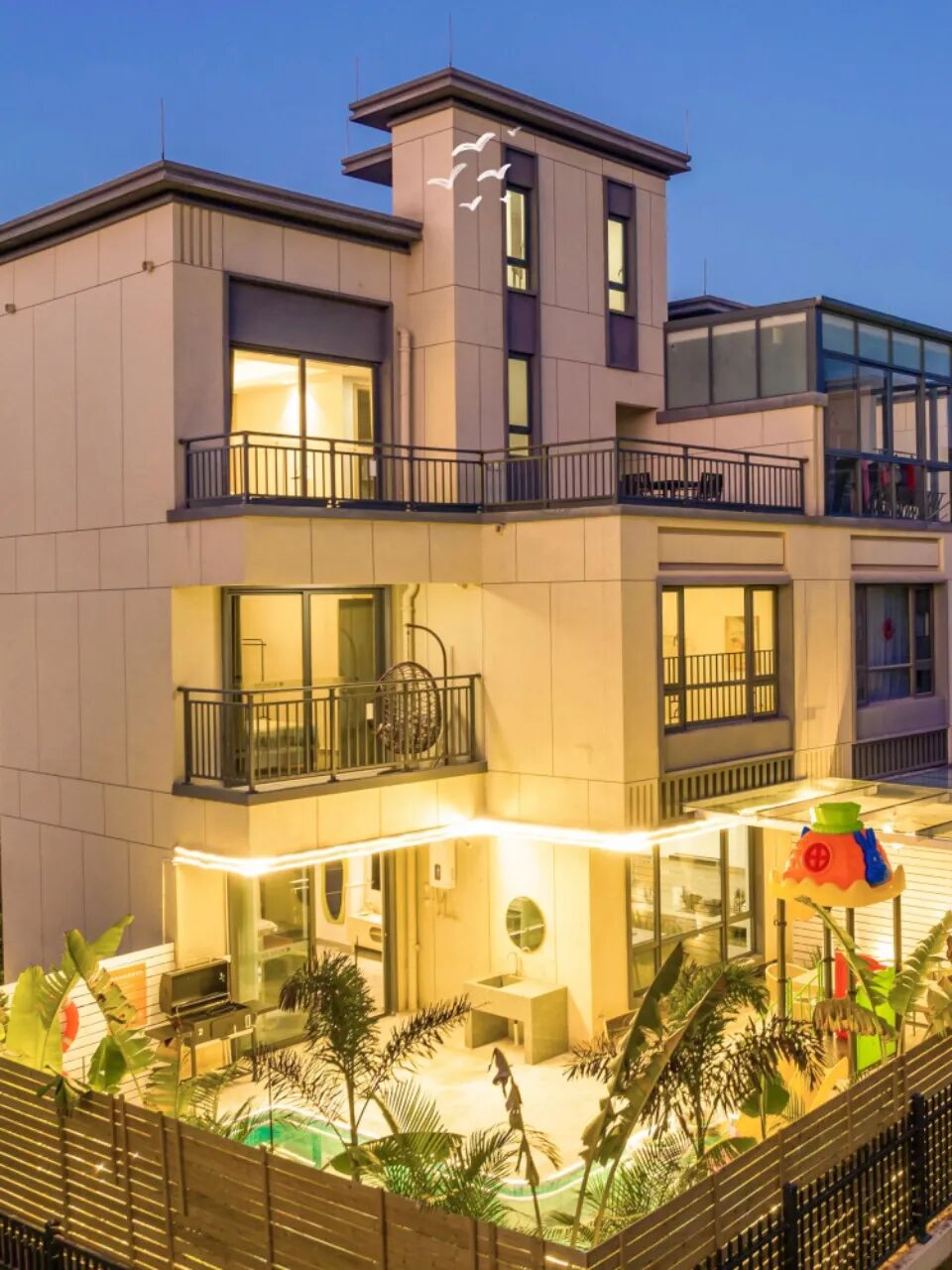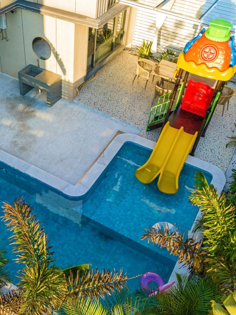 一楼的后花园🈶小型水上乐园和私家暖水泡池,乐园分戏水区和游泳区🏊🏻,足不出户就能感受夏天清凉的快乐,简直是一家人的度假天堂🥰而且还配有多功能厨房、电烧烤机🥓、KTV、麻将,在花园泳池边烧烤赏月太惬意了🤩,客厅还有火烈鸟泡泡池和梦幻旋转木马🎠,童心爆棚!