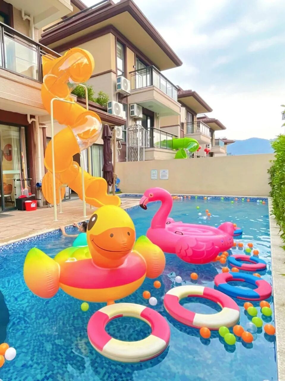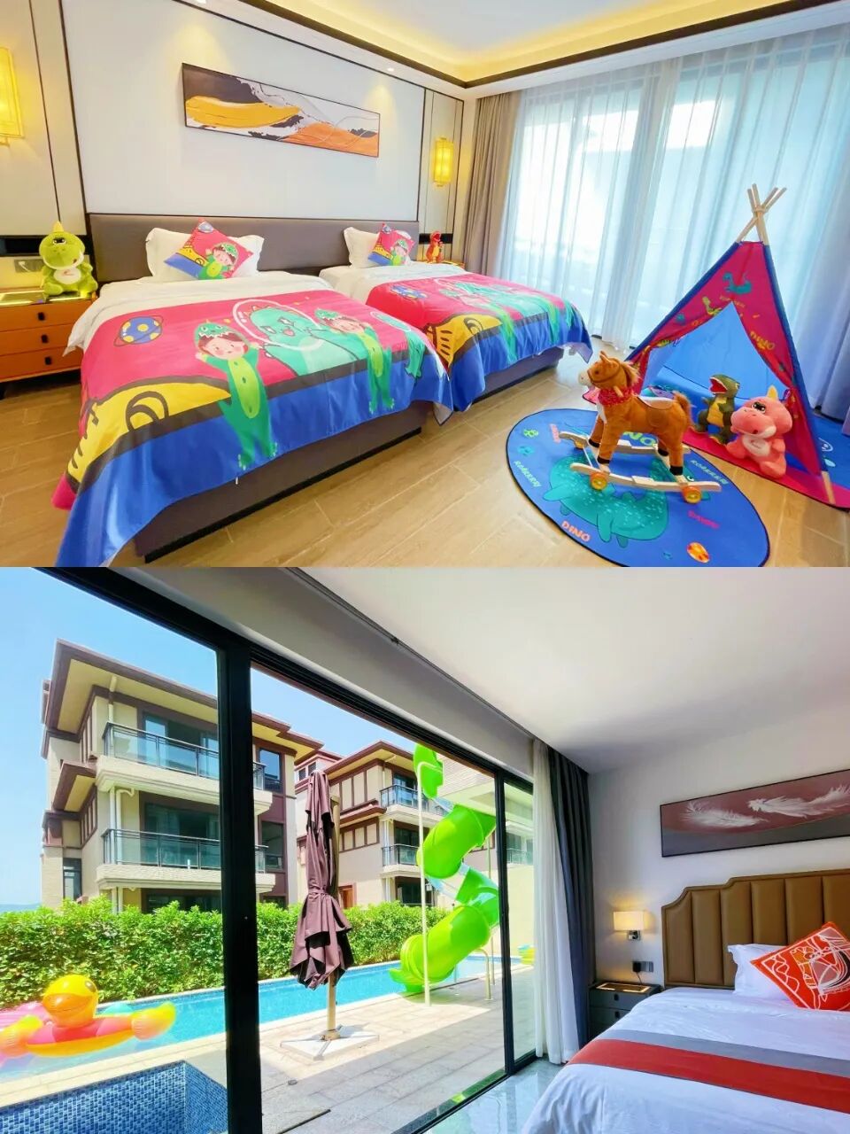 换个地方遛娃🏖 带娃好去处 房间干净又大 有波波池🛝 有小温泉的房间 有小木马的房间 有唱K 有麻将桌 有泳池 还配带泳圈🛟和大鸭子。满足大人小孩 ~