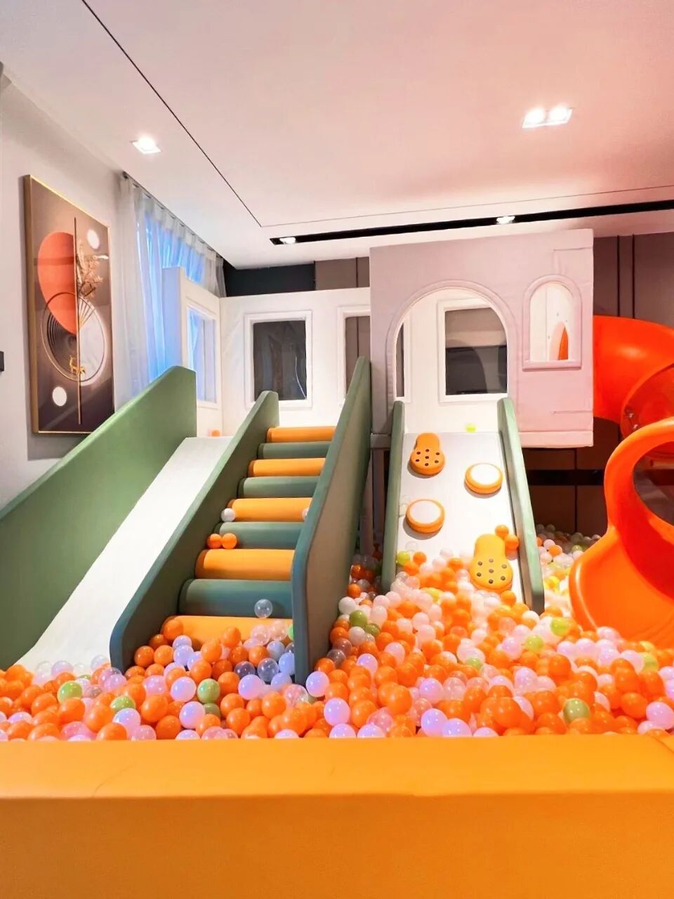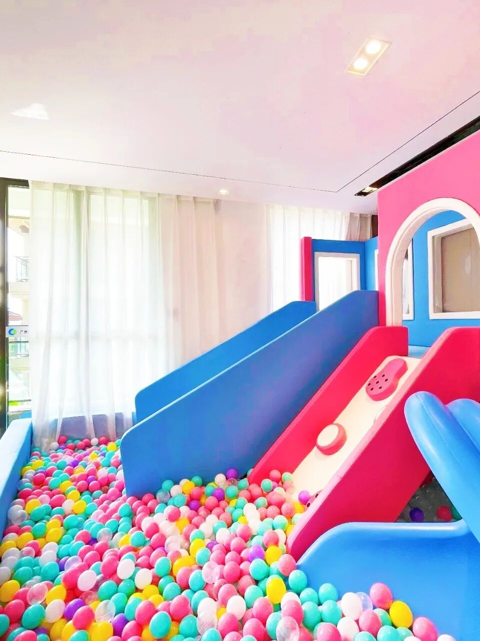 ◾滑滑梯从二楼滑到一楼的泳池,刺激但安全,宝妈们可以放心解放双手啦🥳