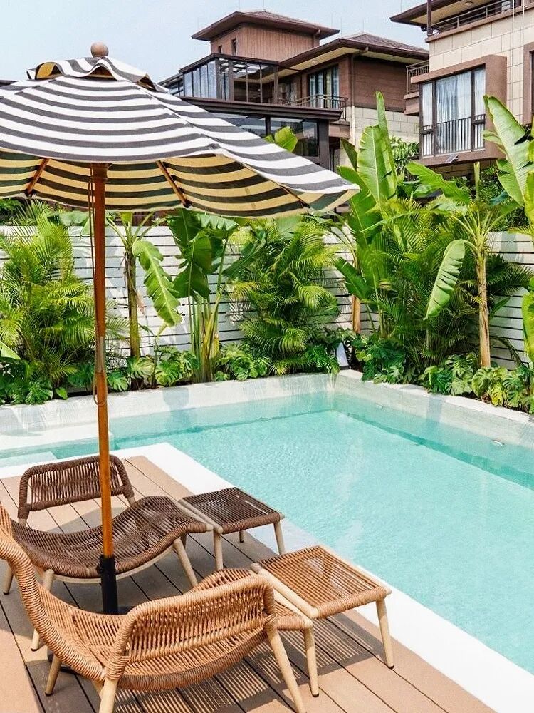 🏝环境:远离闹市,在这别墅里度假很安静舒适整套别墅清新明亮干净泳池出片真的一流‼️配色很好看 轻松出大片