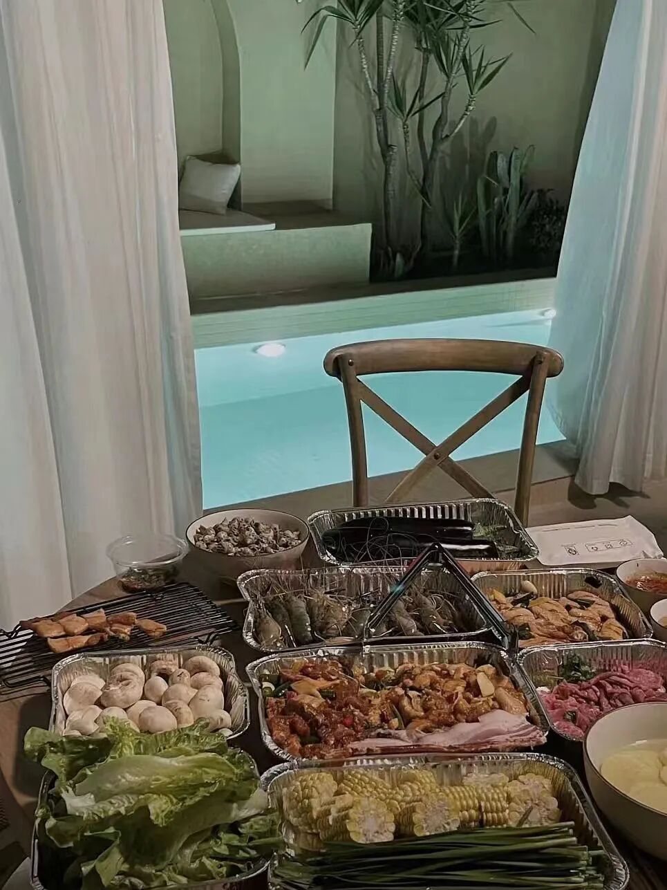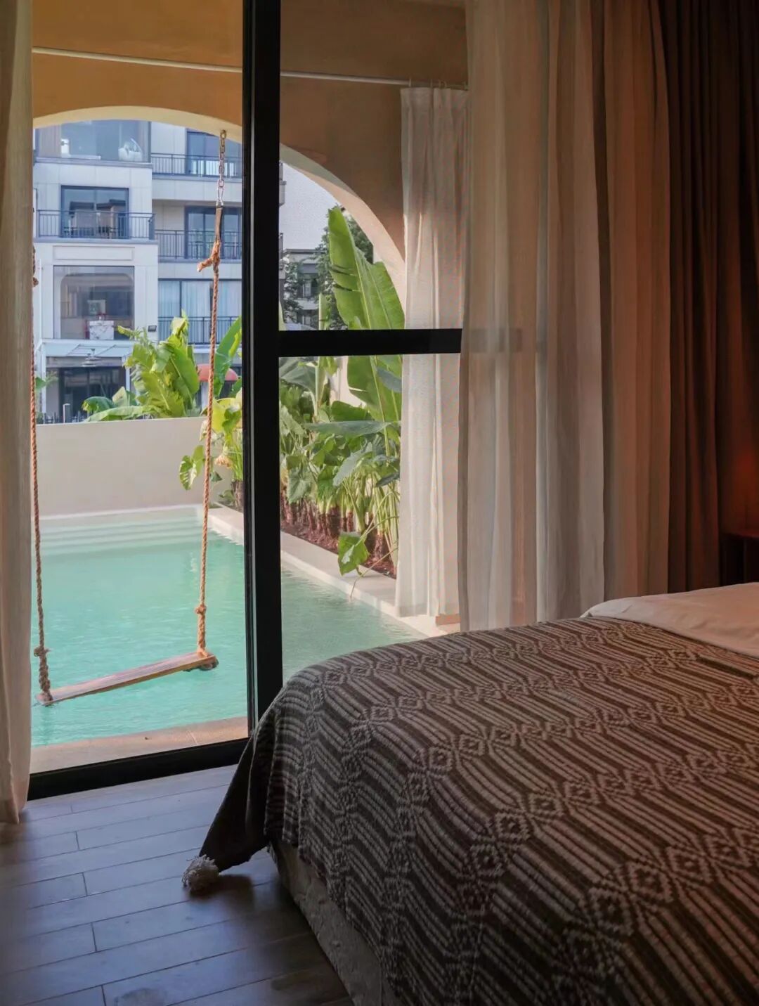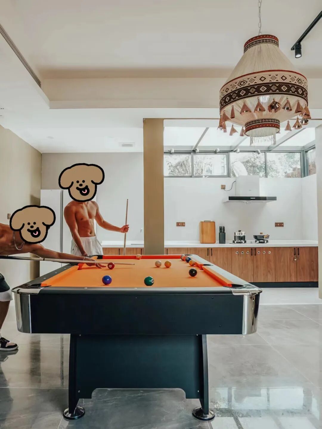 -别墅整体是波西米亚ins风,泳池两边绿植茂盛,小花园家庭聚会,兄弟姐妹聚会🥂小派对都非常合适整栋别墅4层,每层有卫生间淋浴间,总共有5️⃣个房间7️⃣张床负一层的房间一推开窗户就是ins风泳池,必打卡体验异国风情🍶