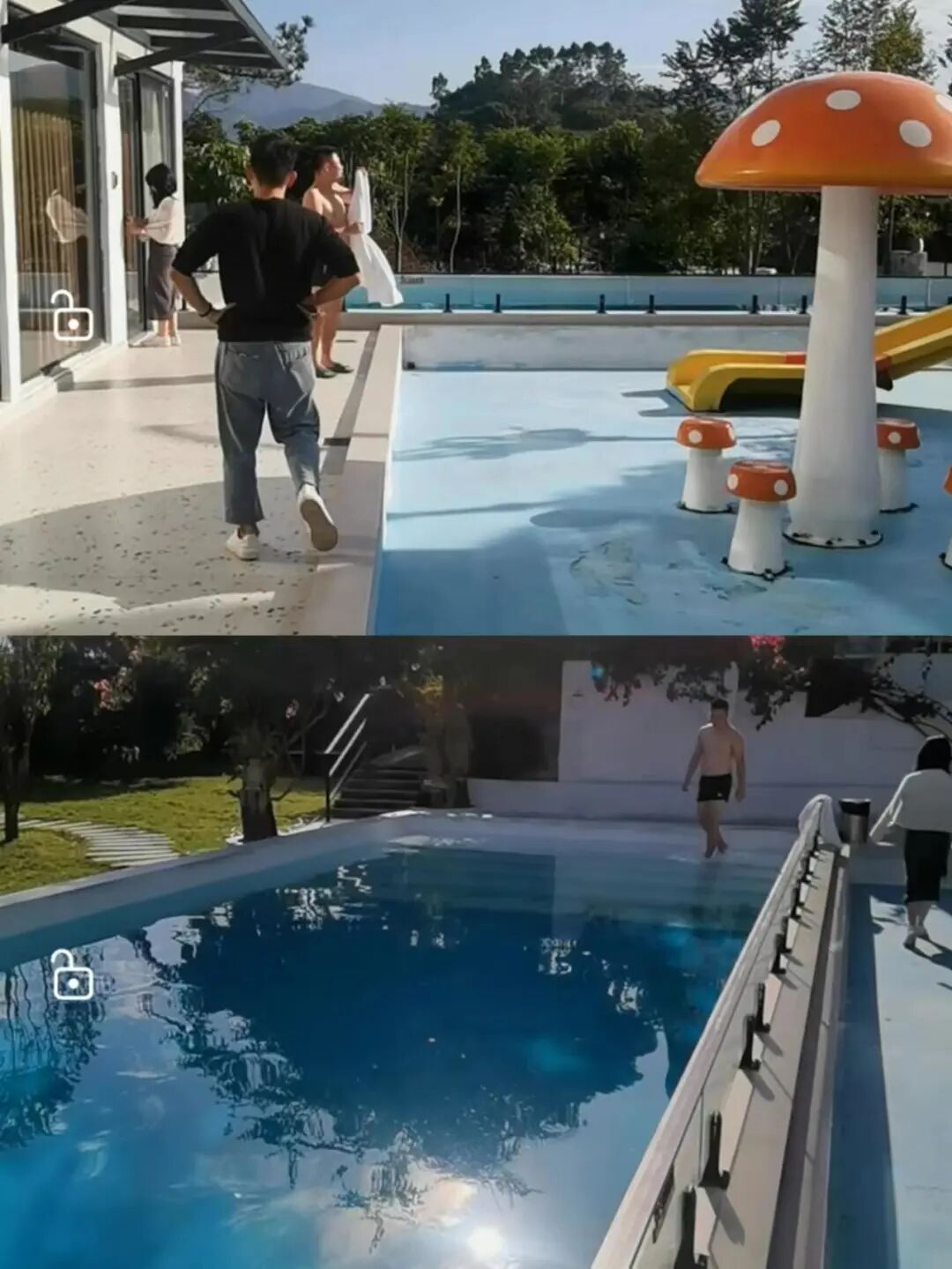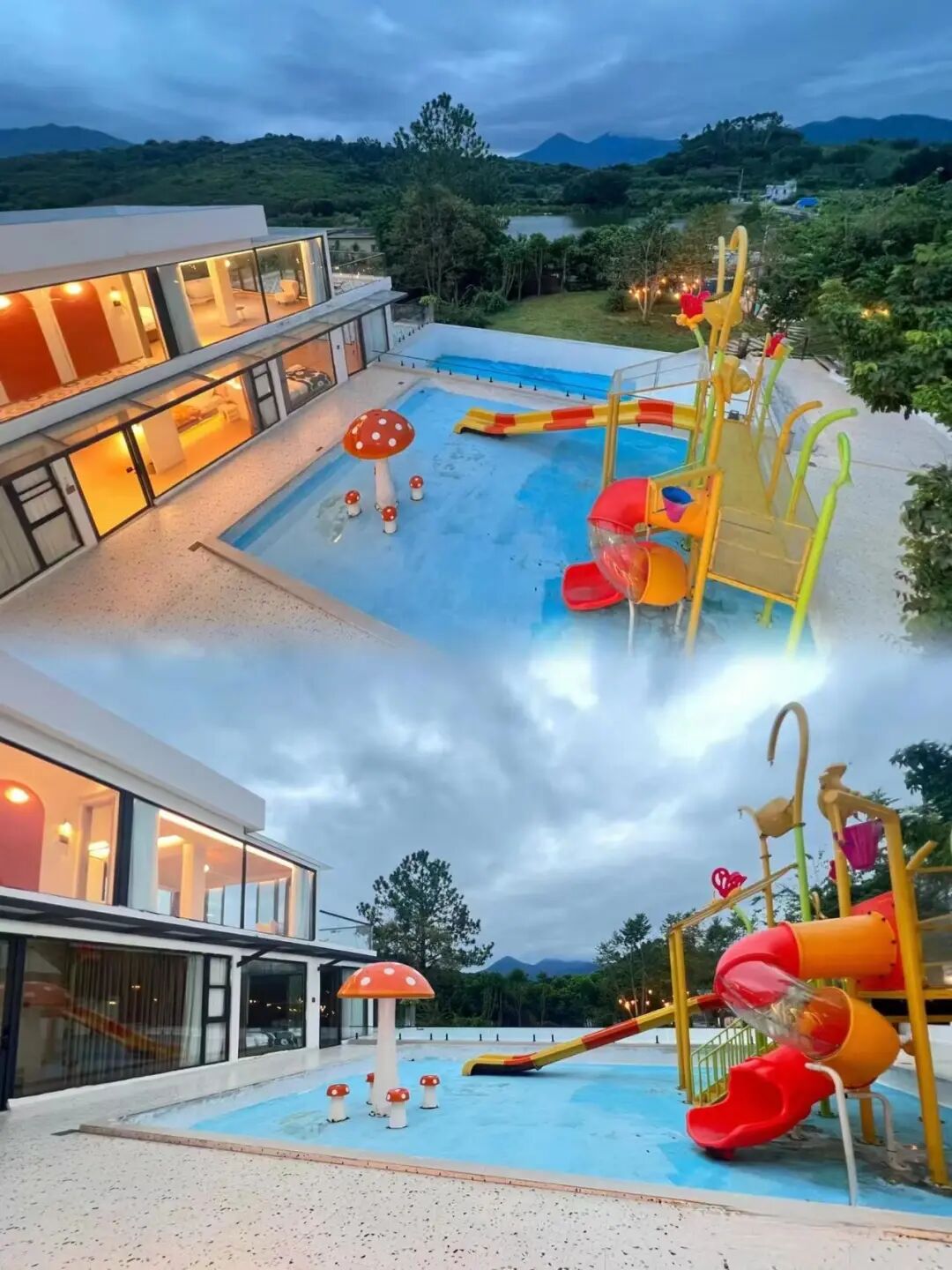 ·别墅纯白色建筑墙体,极简干净,大落地玻璃引入倒映的山景让人心生向往,最吸引人的是别墅自带的水上乐园泳池,边吸氧,边欣赏广袤山野,还可在户外露台,伴着鸟鸣与星空用餐!