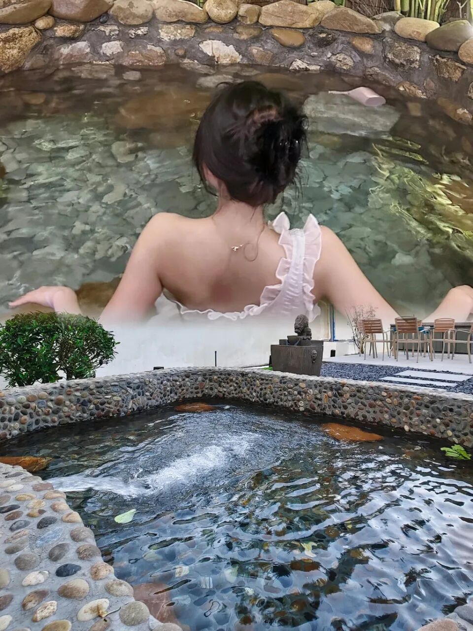 2⃣夜幕降临开灯后氛围感绝了🌟泡着暖滋滋的泉水♨️森呼吸,松弛感拉满