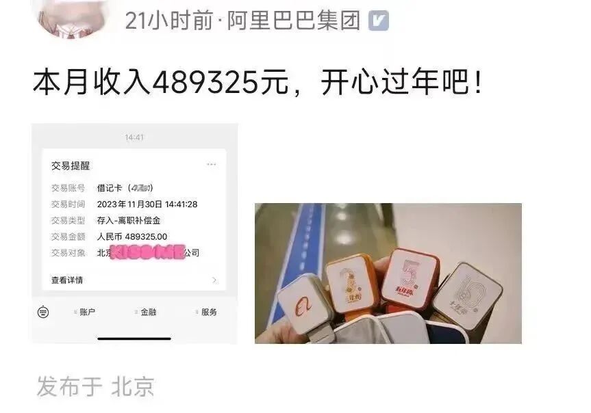 正在大家都在热议那位神秘人士究竟是公司高管还是股东的时候,点开图片,真相才终于浮出水面——这笔巨款并非来自工资,而是公司发放的离职补偿金!据悉,这位获得高额离职补偿金的阿里员工,已经在公司辛勤耕耘了10年以上。