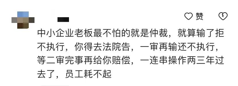 至于遭受了不公平的待遇,员工为什么不仲裁公司,也有网友给出了自己的看法。中小企业的领导者对仲裁并不畏惧,即便败诉也拒不执行。员工若要追求正义,不得不踏上漫长而曲折的法律之路。一审再败,二审的等待与挑战更是让人望而生畏。当终于获得应有的赔偿时,也许已经耗费了三年的时间。对于普通人而言,这样的消耗是无法承受的。