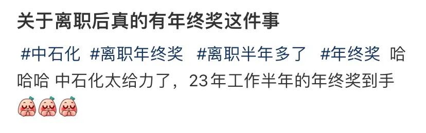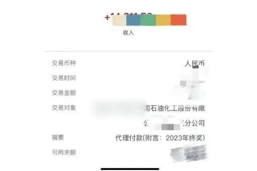 就在这个时候,网络上一名自称是中石化员工的网友进行了爆料,称自己离职半年了,还收到了前东家五位数的年终奖,特别开心。