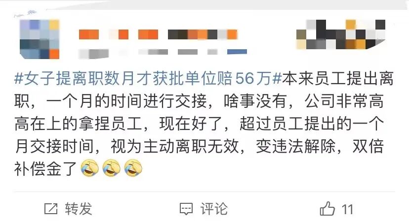 对于为什么公司需要支付赔偿金,可能不少网友没有弄清楚,这名网友给出了自己的分析:若员工主动提出离职,通常情况下,公司是无须支付赔偿金的,这里所指的赔偿,主要是指公司拖延离职手续的办理,这种行为本身就是违法的。