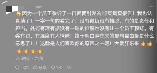 也有网友说:因为一个员工尝了一口面而引发的12页调查报告!有奖有罚,有温度有人情味!终于明白胖东来的那句自由爱是什么意思了。
