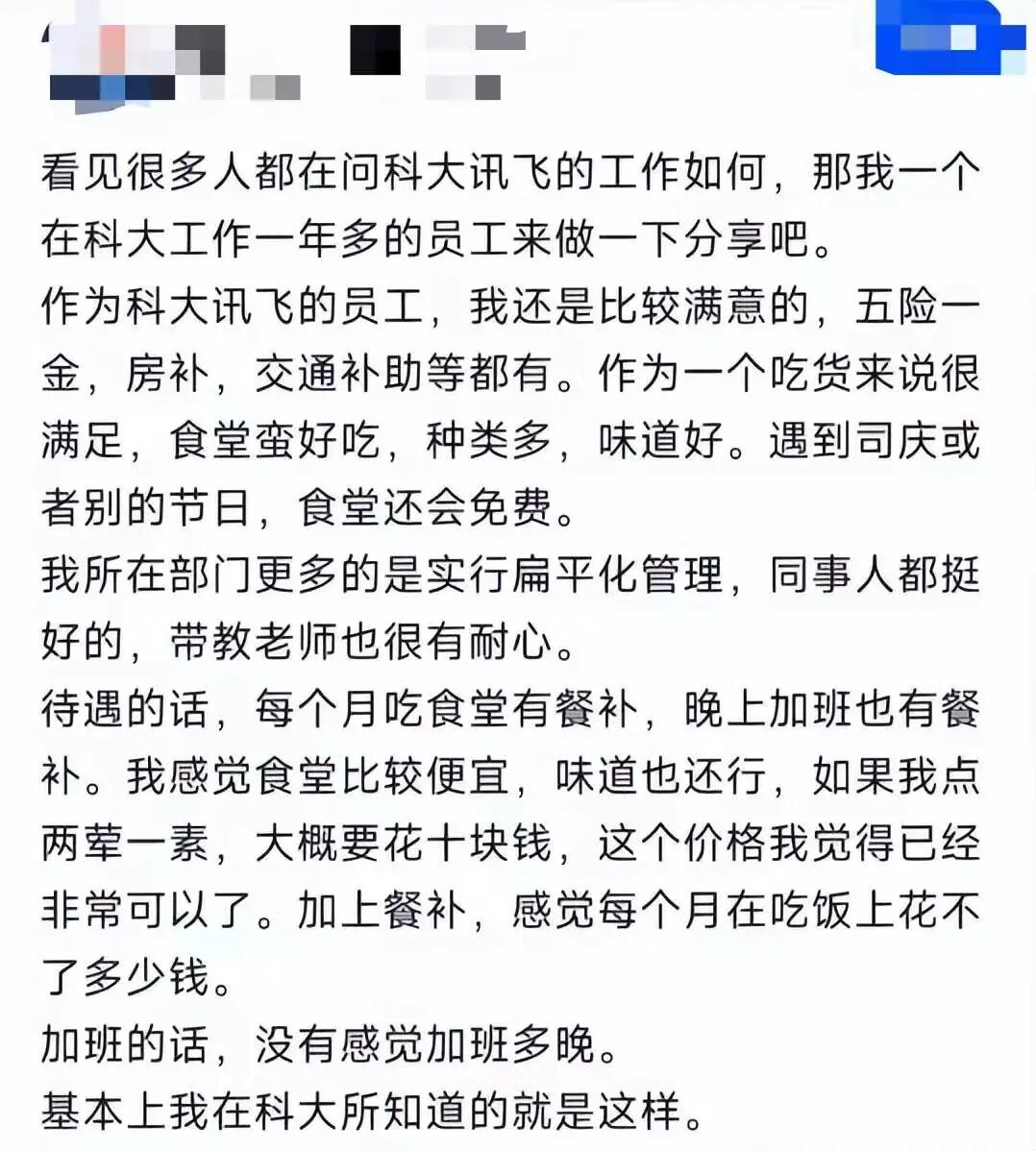 伴随舆论一边倒的同时,网友们对科大讯飞的工作如何越来越感兴趣,在科大讯飞工作的网友对此进行了回应。