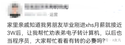不要拿前几年的数据再来看现在,前些年学历低,能力一般,通过培训能很快的入行,现在不一样了,就算学历还可以,培训过,也不一定能够快速的入行。要去评估一下身边的亲戚,看他是不是真的对这个东西热爱,因为不能只看到薪酬,还要看到背后的艰辛。