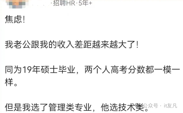 选择的专业不同,学历一样,待遇确实会差异很大,所以选对行业挣大钱,这句话还是有道理的。婚姻要稳定,就是大家彼此收入和理念是一致,一旦差距过大,确实会出现婚姻危机。