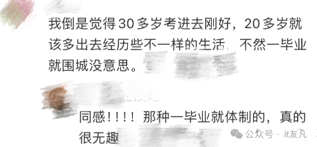 体制内的工作也是比较枯燥的,只是没进去的人会觉得里面很新鲜,所有的工作都是围城。一毕业就开始去体制,人生就会失去很多可能性。如果在社会经历过多姿多彩的生活,再去体制,人生实际上就趋向于圆满。
