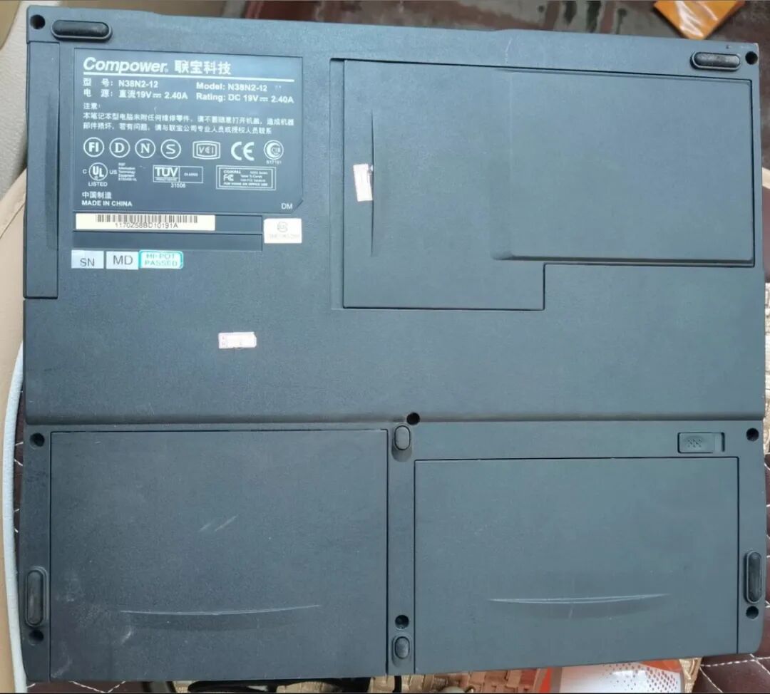 可以看到,这个本子是由来自我们美丽的台湾省,联宝科技所出品的。型号是:N38N2-12(50C)这款笔记本电脑2002年上市,算下来已经是22岁的高龄了。