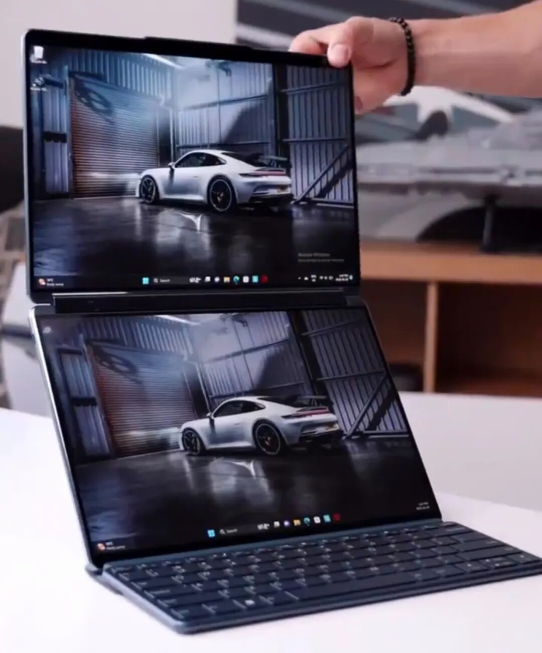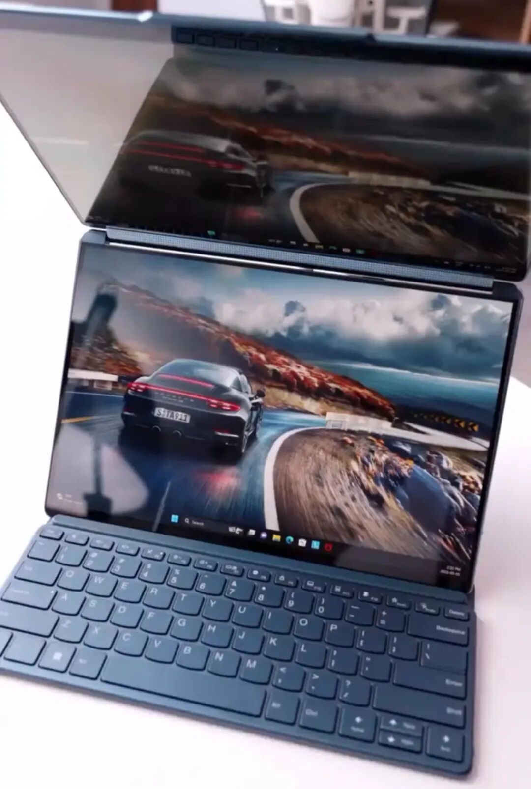Yoga Book 9i的双屏设计极大地扩展了其使用场景。想象一下,在一个屏幕上进行视频会议,而另一个屏幕上则处理实时的工作事务;或者在一个屏幕上阅读参考资料,另一个屏幕上进行创意绘图。这种多任务并行处理的能力,大大提高了工作效率和创作灵感的流动。更不用说,当你需要休息时,将两个屏幕合并,便可享受沉浸式的影音观赏体验。