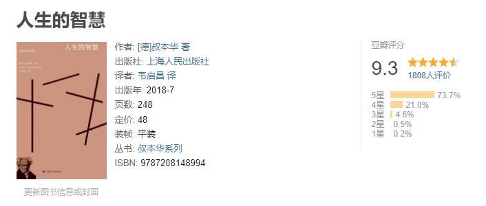 叔本华的这本《人生的智慧》,书里的内容确实是人生的智慧,我看过讲人生的书当中,真正配得上人生智慧书名的,仅此一本,它让我们认识到人之所以为人的道理。