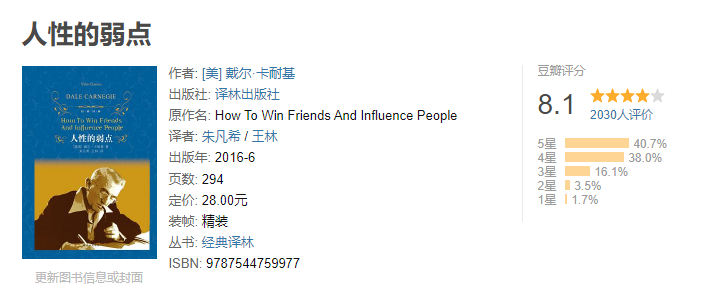 即使在不少看起来非常聪明的人,情商也不算高,因为他一直排斥读一些讲情商的书,比如戴尔·卡耐基的《人性的弱点》。
