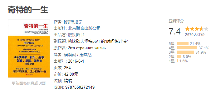 我发现不少人把格拉宁的这本书列为时间管理必读书,这么分类也没错,我更喜欢把它列为正能量满满的励志书籍,这可能跟我阅读它的心境有关。