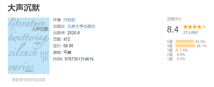 于是顺藤摸瓜读了她的书评集《大声沉默》。你打算写书评的话,这本《大声沉默》就适合研读和模仿。