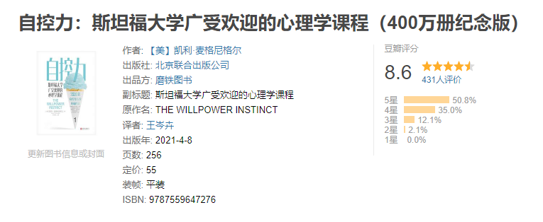 当然,自律也是可以习得的,除了在生活中练习之外,还可以多读几本书。我之前读过这方面的书,其中有三本对我的影响还是较大的,在这里推荐给希望做到自律的朋友。