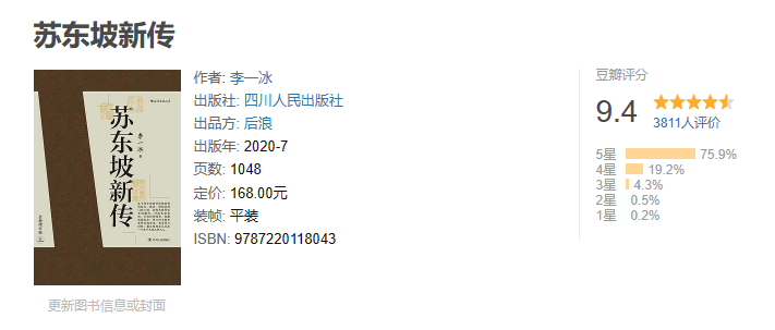 后来我又读了李一冰先生的《苏东坡新传》,不得不说写得用心多了,你对比阅读之后就发现这种差别——看得出来作者倾注了心血,否则写不出这样的作品来。