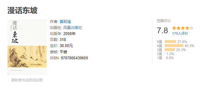 我第一次读莫砺锋先生的作品是《杜甫评传》,书写严谨又不至于太过枯燥。这本《漫话东坡》的书名看上去有点像调侃的味道,给人不那么正式的感觉。