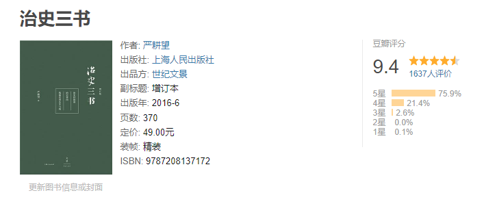 如果你打算在做历史学研究,或者历史学本科专业在读,读这本《治史三书》可以明确今后的研究方向,以及知道该提前准备哪些基本功。