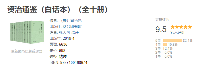 接着说《资治通鉴》。我在《白话版<资治通鉴>哪个版本好?》这篇文章里,介绍了张大可的译本,这也是我目前在读的白话版本。