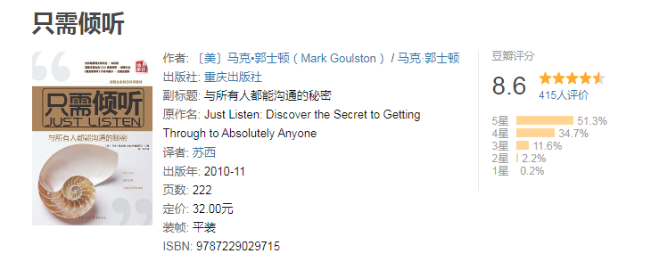 马克·郭士顿的这本《只需倾听》虽然出版10年了,但今天读来依旧不过时,就如副书名说的一样,是你与所有人都能沟通的秘密。
