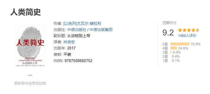 尤瓦尔·赫拉利还融入了多学科的知识,比如生物学、人类学、生态学、政治学和心理学等,带你从不同角度去了解人类的历史。